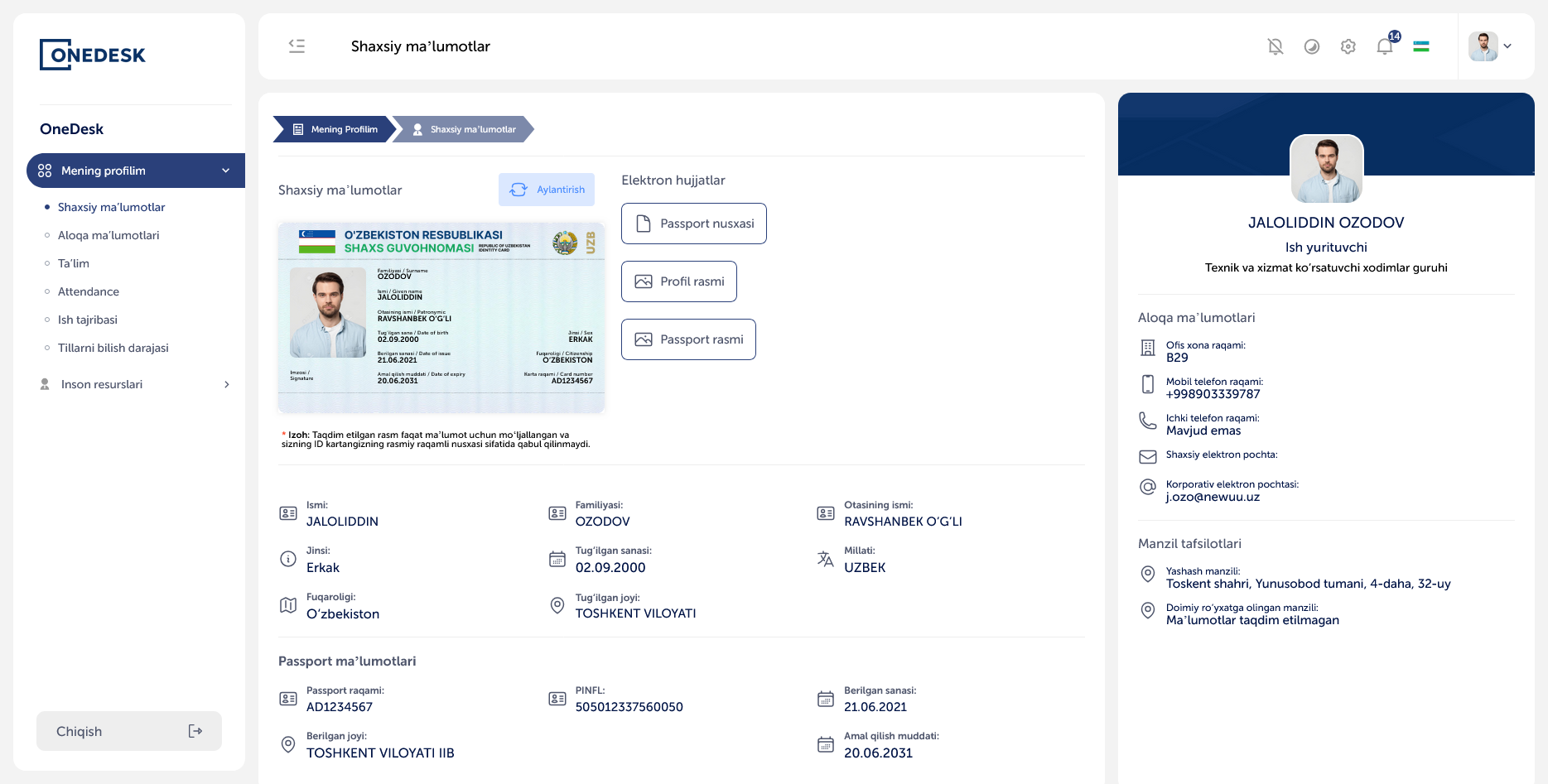 OneDesk — bu zamonaviy HRM tizimi bo‘lib, ta’til so‘rovlarini boshqarish, xodimlarni kuzatish, hisobotlarni shakllantirish kabi jarayonlarni avtomatlashtiradi va qog‘ozbozlikni kamaytiradi.